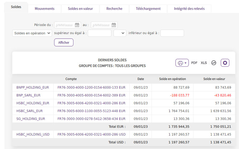 • Visualisation des relevés de comptes